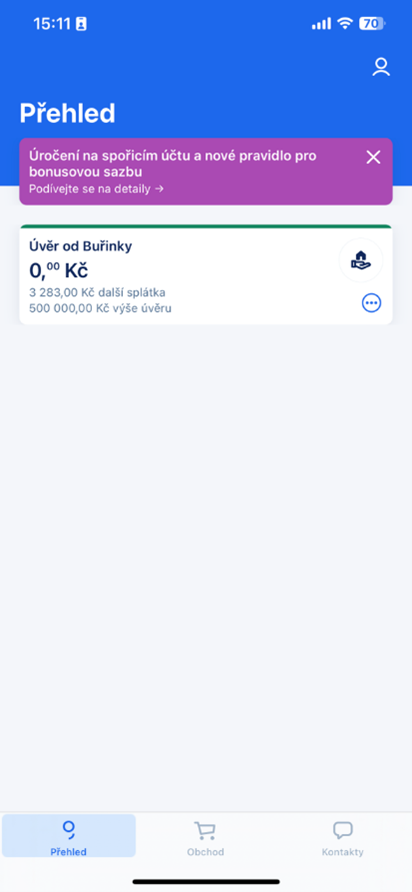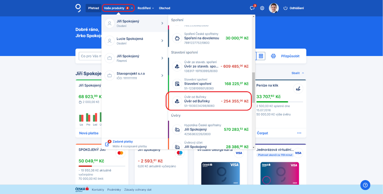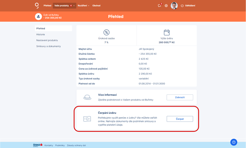 Dostanete se na něj přímo z úvodního přehledu nebo přes záložku Vaše produkty.