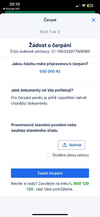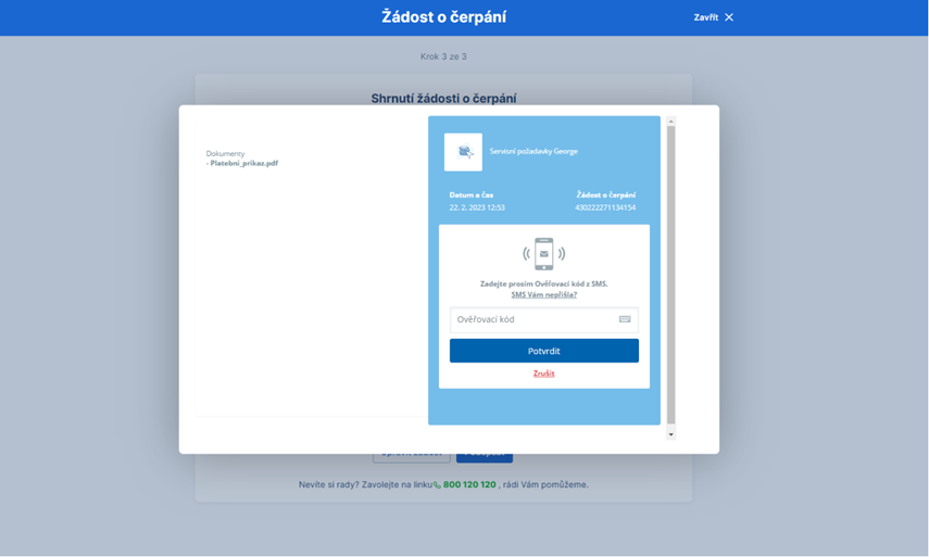 Žádost odešlete buď potvrzením v aplikaci George klíč či autorizační SMS.
